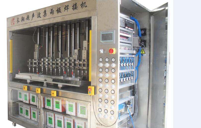 塑料焊接機(jī)集雨板焊接機(jī):采用多臺(tái)超聲波機(jī)器并聯(lián)使用,13522089653 采用伺服電機(jī)多工位運(yùn)動(dòng)多次焊接,整機(jī)為工作臺(tái)形式,由雙排超聲波焊接頭、運(yùn)動(dòng)板下模具為一體、前置啟動(dòng)按鈕、急停按鈕、配電箱部分西門子控制屏、SMC氣壓表調(diào)節(jié)閥等幾大版板組成,并配有照明燈、故障報(bào)警等,動(dòng)作方式為上方超聲波焊頭為氣動(dòng)